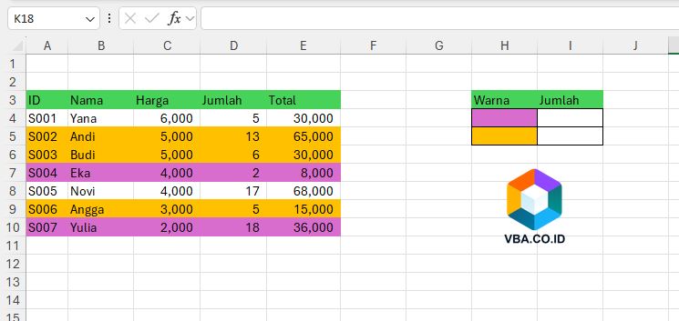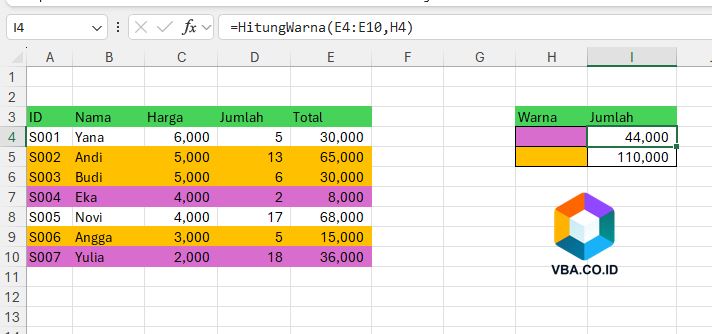 Pada materi kali ini, saya buatkan User defined Function (UDF) untuk melakukan SUM isi Cell berdasarkan warnanya.